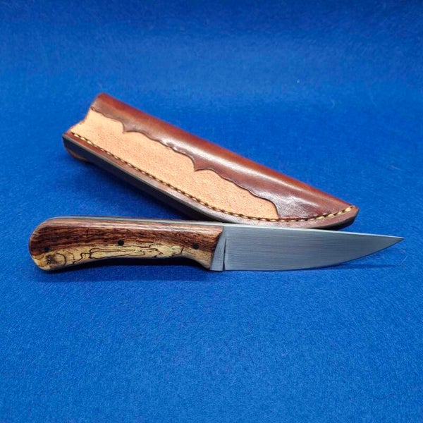 Petit couteau facile à porter en toutes circonstances dans un joli bois échauffé et bicolore aux veines peu communes.