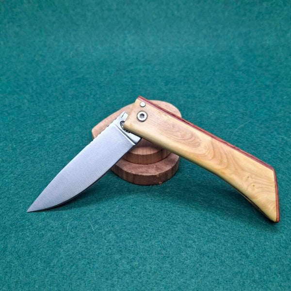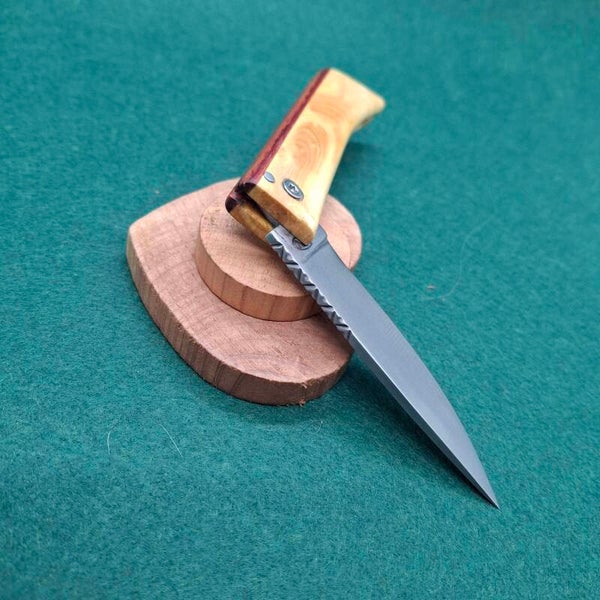 Acier : XC75 AISI 1075 – finition satiné avec guillochage sur 1/3 de la lame
