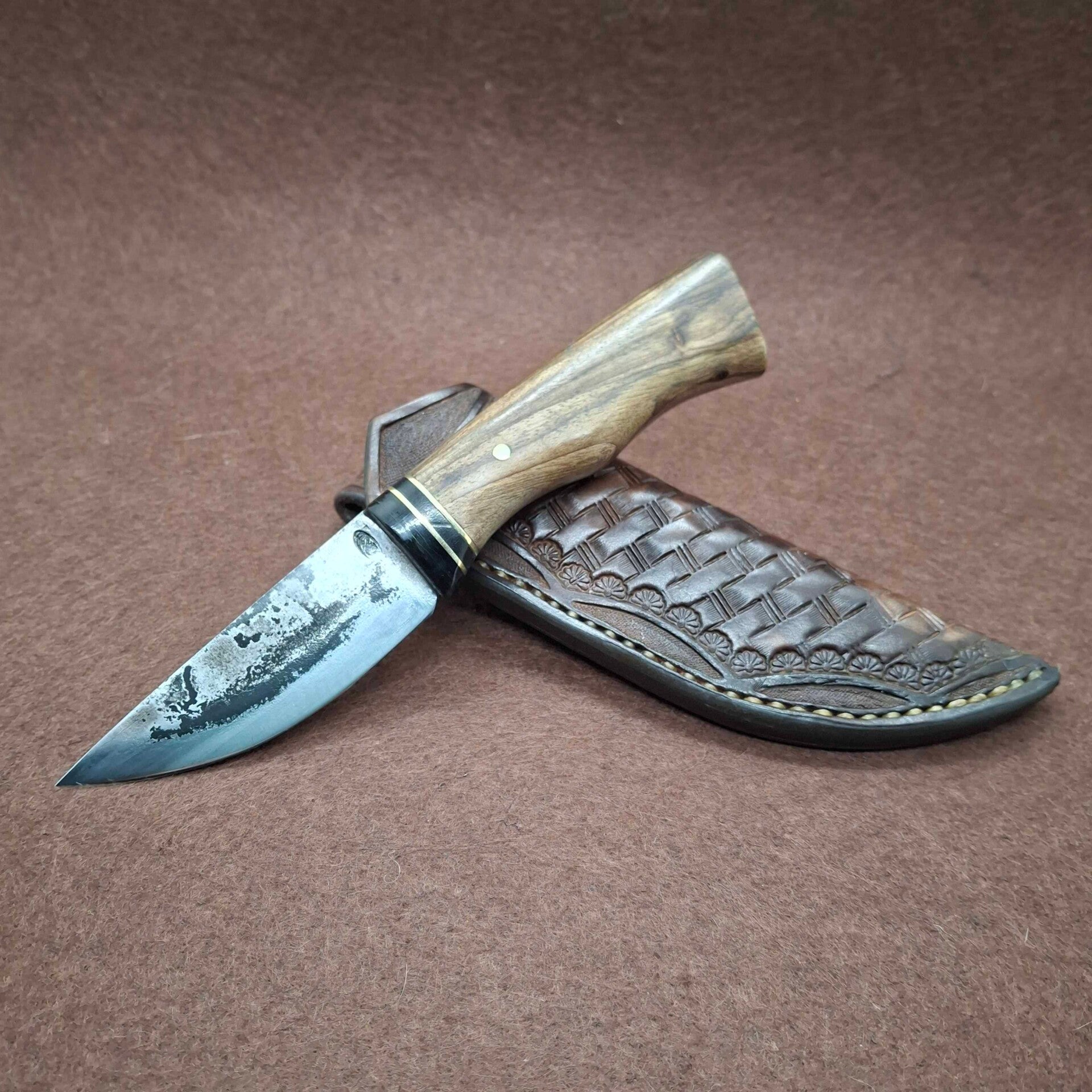 Couteau ultra léger qui, grâce à son look vieillot et sa lame brut de trempe, donne l’impression d’être ancestral.