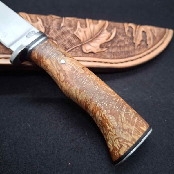 - Manche : garde inox 420, intercalaires inox/ébène, manche en bois de hêtre échauffé ciré, talon de manche ébène/inox